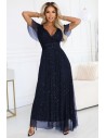 Trapezowa sukienka mini z długimi rękawami - chabrowa